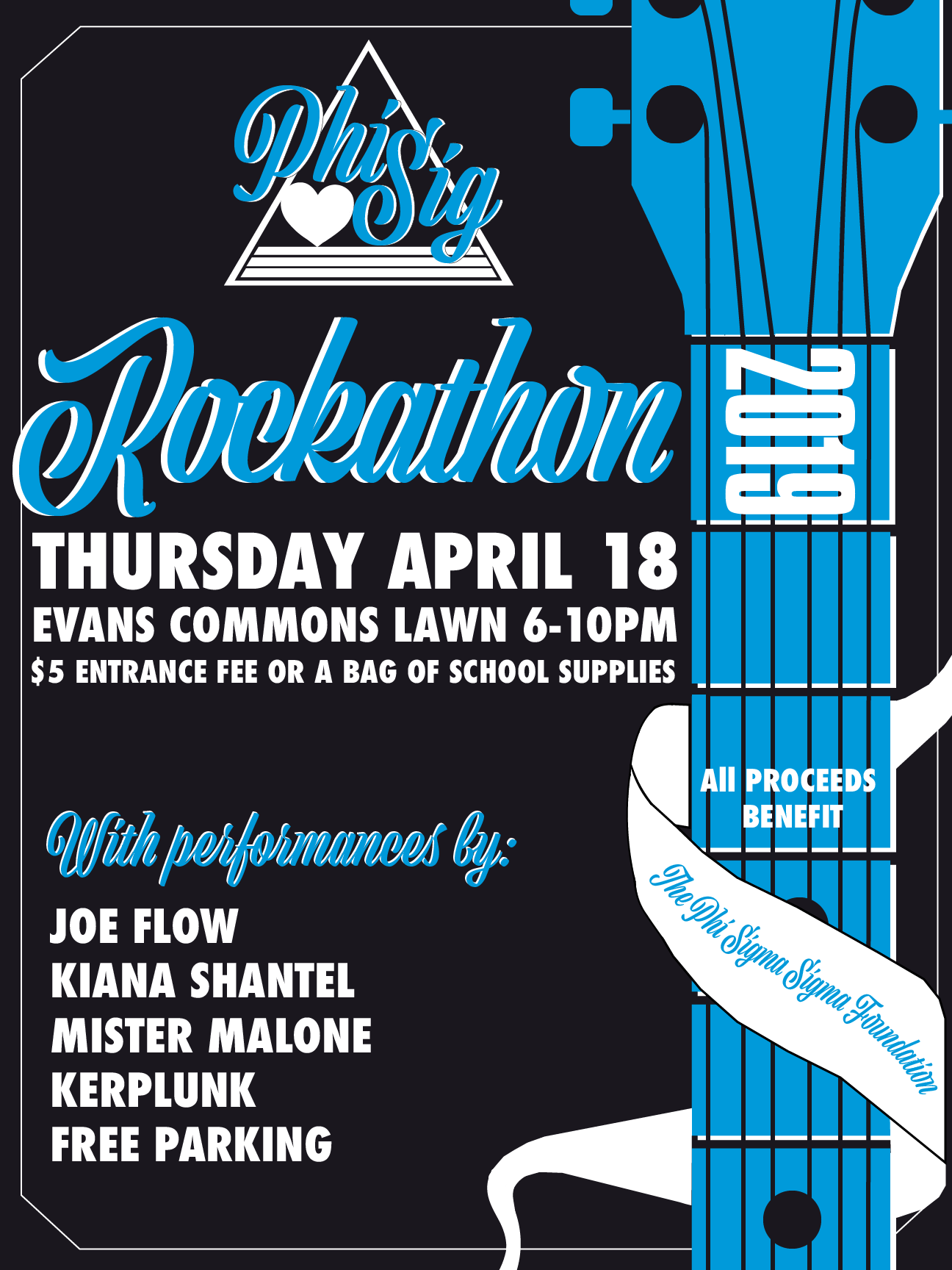 Phi Sigma Sigma's sencond annual Rockathon concert event benefitting the Kids in Need Foundation which promotes school and college readiness by providing students with the school supplies needed to succeed in their school work.